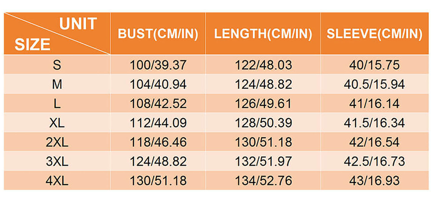 S–4XL (Refer to size chart for best fit)